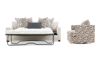 | Name | Quinn Beige 90'' Sleeper Chofa with Queen Cooling Mattress with Beige Accent Swivel Chair & USB & USB-C Ports |