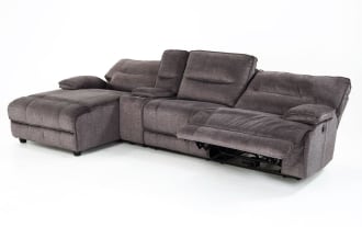 Pacifica Gray 127'' Power Reclining 4 Piece Left Arm Facing Chaise Sectional with Armless Chair & USB Port $1,649.00