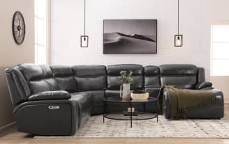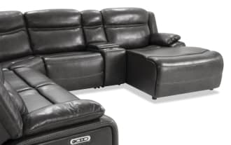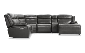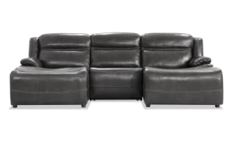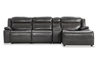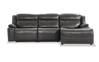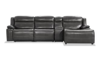 Trailblazer Gray Leather 129'' Power Reclining 4 Piece Right Arm Facing Chaise Sectional with Armless Chair & Power Headrest $2,649.00