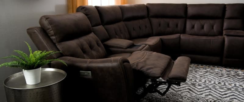 Canyon Walnut 126'' Power Reclining 7 Piece Right Arm Facing Chaise Sectional with Power Headrest $2,999.00