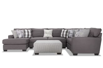 Cottage Chic Gray 150'' 4 Piece Left Arm Facing Chaise Sectional with Ottoman $2,498.00