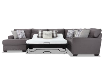 Cottage Chic Gray 150'' 4 Piece Left Arm Facing Sleeper Chaise Sectional with Queen Gel Mattress $2,399.00
