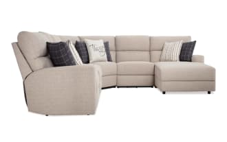 Modern Farmhouse Beige 124'' Power Reclining 6 Piece Right Arm Facing Chaise Sectional with Power Headrest $2,799.00