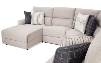 Modern Farmhouse Beige 124'' Power Reclining 6 Piece Left Arm Facing Chaise Sectional with Power Headrest