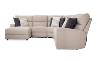Modern Farmhouse Beige 124'' Power Reclining 6 Piece Left Arm Facing Chaise Sectional with Power Headrest $2,799.00