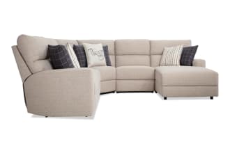 Modern Farmhouse Beige 136'' Power Reclining 5 Piece Right Arm Facing Chaise Sectional with Power Headrest $2,599.00