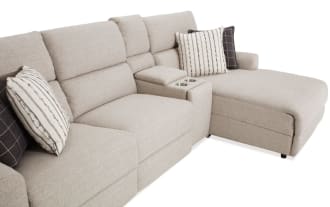Modern Farmhouse Beige 119'' Power Reclining 4 Piece Right Arm Facing Chaise Sectional with Armless Recliner & Power Headrest