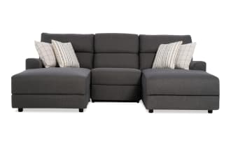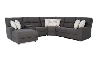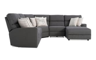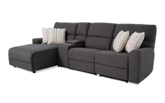 Modern Farmhouse Beige 119'' Power Reclining 4 Piece Right Arm Facing Chaise Sectional with Armless Recliner & Power Headrest $2,299.00