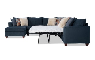 Brynn Navy 142'' 4 Piece Left Arm Facing Sleeper Chaise Sectional with Full Cooling Mattress $2,299.00