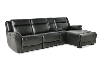 Frontier Black Leather 120'' Power Reclining 4 Piece Right Arm Facing Chaise Sectional with Armless Chair & USB & USB-C Ports $1,949.00