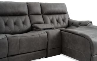 | Name | Canyon Gray 111'' Bluetooth Audio Power Reclining 4 Piece Right Arm Facing Chaise Sectional with Armless Chair |