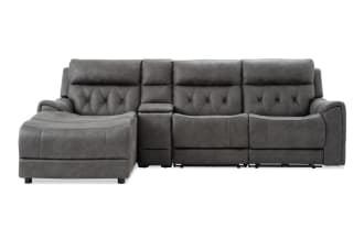 | Name | Canyon Gray 111'' Bluetooth Audio Power Reclining 4 Piece Left Arm Facing Chaise Sectional with Armless Chair |