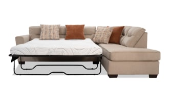 Dylan Beige 112'' 3 Piece Right Arm Facing Sleeper Dual Chaise Sectional with Queen Cooling Mattress $1,599.00