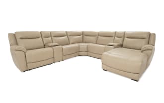 Frontier Taupe Leather 129'' Power Reclining 7 Piece Right Arm Facing Sectional with USB & USB-C Ports