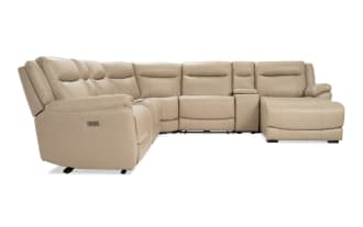Frontier Taupe Leather 129'' Power Reclining 7 Piece Right Arm Facing Sectional with USB & USB-C Ports $2,349.00