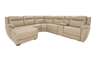 Frontier Taupe Leather 129'' Power Reclining 6 Piece Left Arm Facing Sectional with USB & USB-C Ports $2,299.00