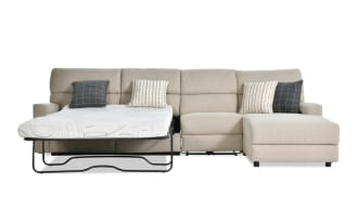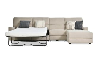 Modern Farmhouse Beige 160'' 3 Piece Right Arm Facing Power Reclining Sleeper Chaise Sectional with Full Gel Mattress & Power Headrest $1,900.00