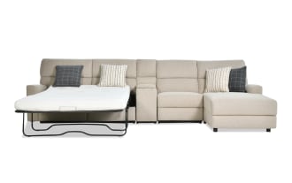 Modern Farmhouse Beige 173'' 4 Piece Right Arm Facing Power Reclining Sleeper Chaise Sectional with Full Gel Mattress & Power Headrest $2,000.00