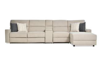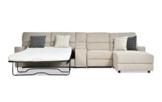 Modern Farmhouse Beige 173'' 4 Piece Right Arm Facing Power Reclining Sleeper Chaise Sectional with Full Gel Mattress & Power Headrest $2,099.00
