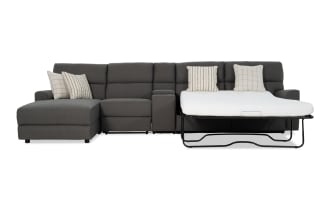 Modern Farmhouse Gray 173'' 4 Piece Left Arm Facing Power Reclining Sleeper Chaise Sectional with Full Gel Mattress & Power Headrest $2,099.00