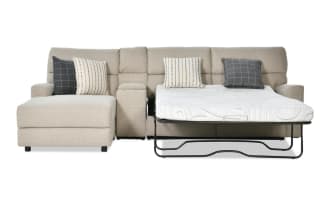 Modern Farmhouse Beige 145'' 3 Piece Left Arm Facing Power Reclining Sleeper Chaise Sectional with Full Cooling Mattress & Power Headrest $1,700.00