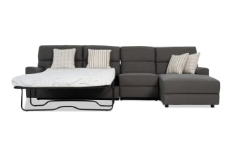 Modern Farmhouse Gray 160'' 3 Piece Right Arm Facing Power Reclining Sleeper Chaise Sectional with Full Cooling Mattress & Power Headrest $1,900.00
