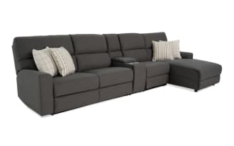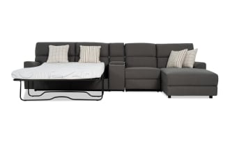 Modern Farmhouse Gray 173'' 4 Piece Right Arm Facing Power Reclining Sleeper Chaise Sectional with Full Cooling Mattress & Power Headrest $2,000.00