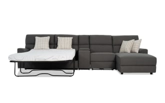 Modern Farmhouse Gray 173'' 4 Piece Right Arm Facing Power Reclining Sleeper Chaise Sectional with Full Cooling Mattress & Power Headrest $2,099.00