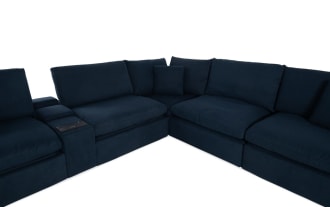 Dream Gray 131'' Power Reclining 5 Piece Left Arm Facing Modular Sectional with Power Headrest with 2 Recliners, 1 Armless Chair, 1 Corner, 1 Ottoman