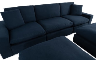 Dream Navy 131'' Power Reclining Modular Sofa with Power Headrest with 3 Recliners, 2 Ottomans $2,748.00