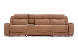 Dynamic Cognac Leather 123'' Power Reclining 4 Piece Sofa with Armless Chair & USB & USB-C Ports $3,199.00