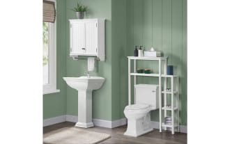 Norman 2 Piece White Over the Toilet Bathroom Space Saver Shelves & Wall Shelf Set $189.99