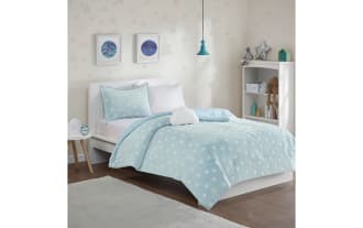 Name | Glow Star Full/Queen Aqua Novelty Reversible 4 Piece Comforter Set |