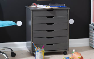 Name | Edison Gray 6 Drawer Solid Wood Rolling Cart |