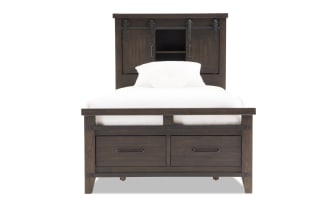 With its antique look, my Montana Youth Panel Storage Bed will feel just like home to your child! Constructed of pine solids and veneers, this storage bed is sturdy and packed with features. The lovely rustic headboard includes a USB port for charging electronic devices and there's not one but TWO handy storage drawers in the footboard. Every little bit of extra storage really makes a difference in a kid's room!