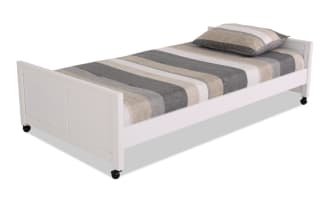 The bed is surprisingly strong and my kids love the finish! The trundle rolls in and out so nicely and the assembly wasn’t too hard. I’m super impressed and satisfied with my purchase!