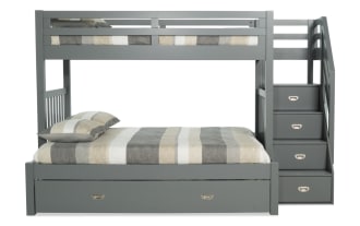 Chadwick Twin/Full Gray Stairway Bunk Bed with 2 Memory Foam Mattresses & Twin Trundle $1,699.00