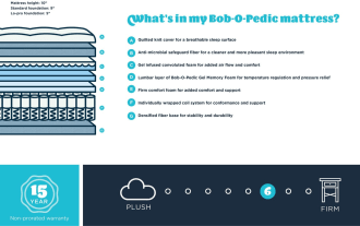 | Features | <ul class='product-features_list'><li class='product-features_list_value'><span class='product-features_list_value_info'>Adjustable Height Legs</span></li></ul><ul class='product-features_list'><li class='product-features_list_value'><span role='tooltip' tabindex='0' tooltip='Bob-O-Pedic Gel Memory Foam features state-of-the-art temperature sensitive memory foam that is infused with gel for temperature regulation and pressure relief.' class='product-features_list_value_aslinkdotted_line'>Bob-O-Pedic Gel Memory Foam</span></li></ul><ul class='product-features_list'><li class='product-features_list_value'><span role='tooltip' tabindex='0' tooltip='If your new mattress/foundation is delivered via BOBtastic White Glove Delivery, the team will remove your old mattress/foundation! Old mattresses/foundations must be in safe and sanitary condition. This service is not available for mattresses/foundations that are delivered via BOBtastic Threshold Delivery, No-Contact Delivery and FedEx.' class='product-features_list_value_aslinkdotted_line'>BOBtastic Mattress Takeaway</span></li></ul><ul class='product-features_list'><li class='product-features_list_value'><span role='tooltip' tabindex='0' tooltip='I truly care what goes into making all of my furniture and that’s why every product that contains CertiPUR-US® foam has been tested and certified by independent laboratories. These products include all of my mattresses and most upholstery items. You can rest assured knowing that the foam has been put through a series of tests to ensure content, indoor emissions and durability meet the strict standards of the CertiPUR-US® program. CertiPUR-US® certified foams have low emission (VOCs) for indoor quality; are made without prohibited phthalates; ozone depleters (no CFCs); mercury, lead or heavy metals; formaldehyde and without PBDE flame retardants and have been tested for durability and performance.' class='product-features_list_value_aslinkdotted_line'>CertiPUR-US®</span></li></ul><ul class='product-features_list'><li class='product-features_list_value'><span class='product-features_list_value_info'>Easy Delivery</span></li></ul><ul class='product-features_list'><li class='product-features_list_value'><span class='product-features_list_value_info'>Platform/Storage Bed Compatible</span></li></ul> |