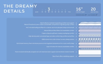 | Mattress Layers | Hand tufted tencil knit cover, Anti-microbial safeguard fiber, Natural silk and wool fibers, plush quilt foam, High density plush foam, Gel infused memory foam, 2000 zoned micro coils, Natural cotton, Foam encased individually wrapped coils, Base Foam. |