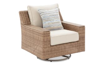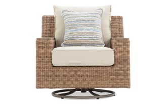 Palm Harbor Linen & Brown Wicker Outdoor Swivel Chair