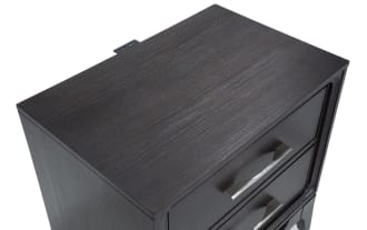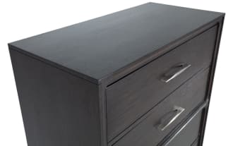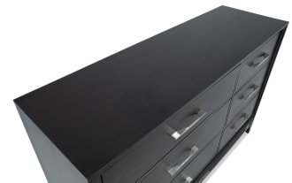 The seemingly simple silhouette of my Soho bedroom set is actually anything but with alluring cutout details and contrasting hardware. There's plenty of room in the dresser and chest for your PJs, socks, and old college tees you haven't gotten around to throwing out yet, and even more storage in the nightstand for bedside necessities. Plus your gadgets will wake up as recharged as you with built-in USB and USB-C charging ports!