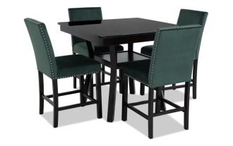 | Name | Riviera 5 Piece Black & Green Upholstered Counter Height Dining Set |