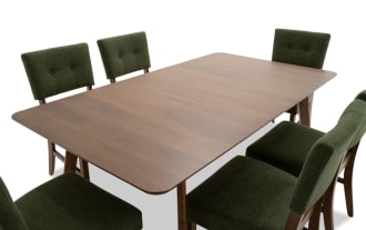 Name | Bettie 7 Piece Walnut & Avocado Upholstered Extendable Dining Set |