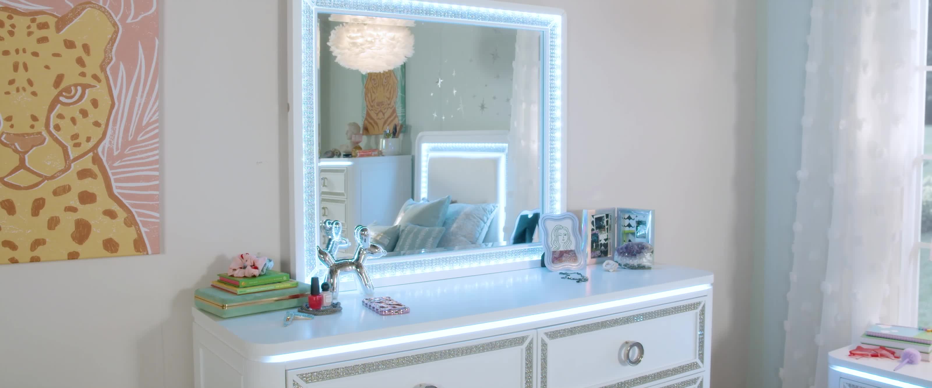 Glitz White 6 Drawer Dresser & Mirror $599.00