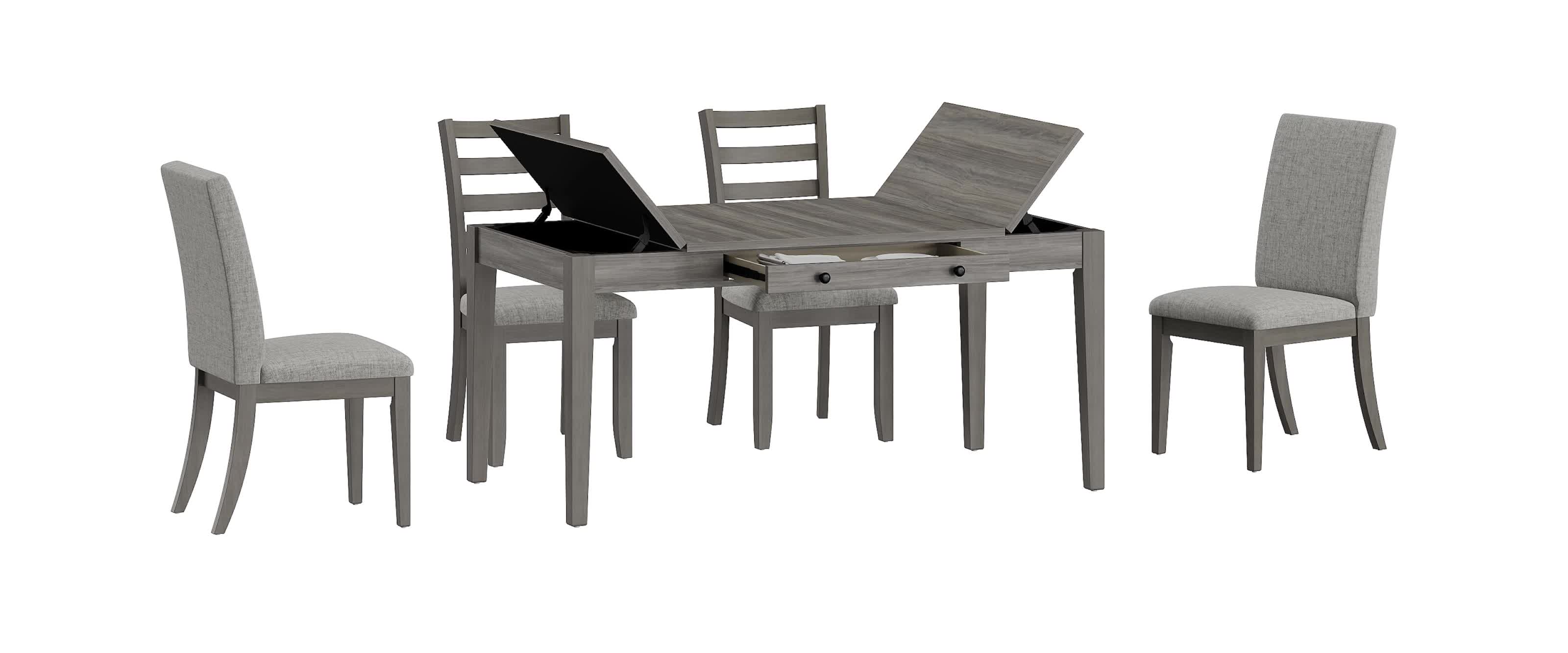 | Name | Homeworks 6 Piece Gray Upholstered Dining Set with Storage Bench |