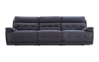 The Rumor Blue 113'' Power Reclining Sofa is praised for its comfort, stylish appearance, and functionality. Customers highlight the quality, comfort of the recliner, and the efficiency of the delivery. It is also noted for its contemporary design and the convenience of built-in USB ports.
